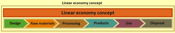 Throughout its evolution and diversification, the industrial economy has never moved beyond one fundamental characteristic established in the early days of industrialization. The industrial economy is based upon a linear model of resource consumption which follows a ‘take-make-dispose’ pattern. The linear ‘take-make-dispose’ model relies on large quantities of easily accessible resources and energy, and as such is increasingly unfit for the reality in which it operates. Organizations extract materials, use them in the production of products, sell the products to customers who later discard them when the products life is over and no longer serve their intended purposes. This is the norm in the case of linear economy concept (Fig 1), without concerns for externalities which can take place. In addition, this behaviour is built on the assumption that resources are endless, and the external input is needed to support economic growth.