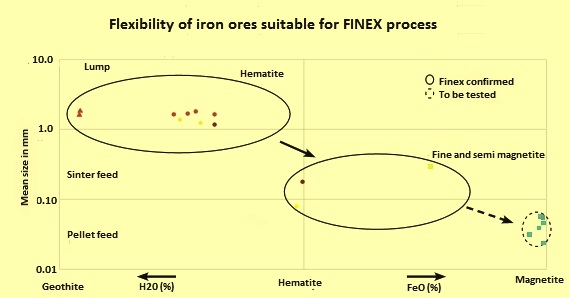 Flexibility of iron ores suitable for FINEX process
