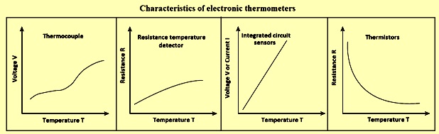 There are many types of electronic thermometers as described below. Fig 2 shows the characteristics of these sensors.