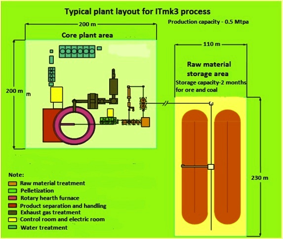 ITmk3 process is also known as Iron making technologies (IT) mark 3 and is one of the coal reduction technologies. IT mark 1 is the iron making process by blast furnace (BF) while the IT mark 2 is the iron making by direct reduction mostly by gas based reduction processes (Fig 1). This process has been developed by Kobe Steel and is environmental friendly.