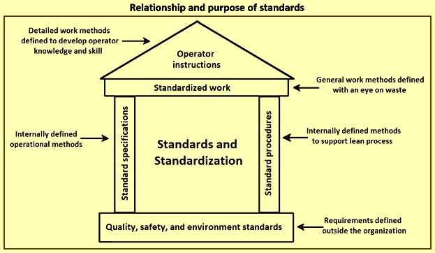 The standards are used to meet several requirements which include (i) reducing variation and correction of error, (i) improvement in safety at the workplace, (iii) facilitation of communication, (iv) improving visibility of the problems, (v) assisting in training and education, (vi) increasing employee discipline, (vii) facilitating the response to the challenges, and (viii) providing clarification of the working procedures. The intention of the standard is to carry out actions without mistakes, the first time around, efficiently, and without waste.